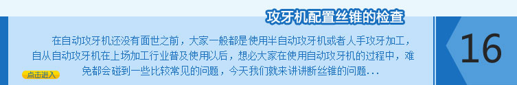全面表述氣動自動攻絲機的工作效果 特別推薦臺式攻絲機 手動攻絲機有哪些故障 懸臂氣動攻牙機配件質量好的是哪家 單軸電動攻牙機壞了怎么辦 銷量第一折臂電動攻牙機 專業(yè)生產萬向攻絲機 如何選用帶萬向氣動攻牙機配件 選用旋臂氣動攻絲機優(yōu)點明顯 單孔攻牙機的專業(yè)用途 震動攻絲機多久需要維護 有哪些方法可以辨別真正的單軸氣動攻絲機 貯存旋臂氣動攻牙機需謹慎 解析齒輪式攻牙機的優(yōu)缺點 攻絲機扭矩購買時需要注意的地方 家用套筒攻絲機的質量 山東熱賣的同步攻絲機廠商 哪個公司的手提式電動攻絲機好用 氣動自動攻絲機使用注意事項及保養(yǎng)知識 生活中常見的半自動臺式攻絲機有哪些 操作鋼筋攻絲機有沒有具體的規(guī)定 怎樣對加長支架氣動攻牙機進行維護保養(yǎng) 怎樣操作多軸氣動攻牙機無事故發(fā)生 如何安全無誤的使用多軸電動攻絲機 什么牌子的帶萬向氣動攻絲機質量好 最有質量品質的旋臂電動攻絲機 自動螺距多軸攻牙機的主要優(yōu)點 旋臂電動攻牙機的操作方法 旋臂氣動攻絲機的詳細參數(shù) 質量好的全自動套筒攻絲機 售后周到貼心的搖臂氣動攻絲機 自動攻牙機的幾大優(yōu)點 小型電動攻絲機用處舉例 滾絲機的諸多使用方法歸納 斜式攻牙機的特點的介紹 每年銷量最多的搖臂攻牙機產品 利用原理靈活使用帶萬向氣動攻絲機 多軸自動攻牙機超低價 搖臂攻牙機在使用過程前應該知道什么 連接套攻絲機維修的具體指導 螺紋攻絲機購買時主要看什么 購買小攻絲機要注意哪些 哪個品牌的半自動臺式攻絲機質量好 購買滾牙機的要求有哪些 使用評價最高的液壓攻絲機 觸摸屏攻絲機去哪里購買 存儲氣動懸浮攻絲機的注意事項 單孔氣動攻牙機每月都需要保養(yǎng)嗎 哪里制造的小型攻絲機價格比較好 彈頭攻絲機的生產使用 如何做好單軸電動攻牙機的使用準備 性價比最高的電動攻牙機 安全使用手動攻絲機需要了解的知識 請問哪種自動鉆床攻絲機便宜 不用臥式攻牙機后如何保存 誰用過最好的滾絲機 彈頭攻絲機結構分析 最熱銷的垂直攻絲機 怎樣使用攻絲機馬達 全國銷售質量最好的鉆牙機